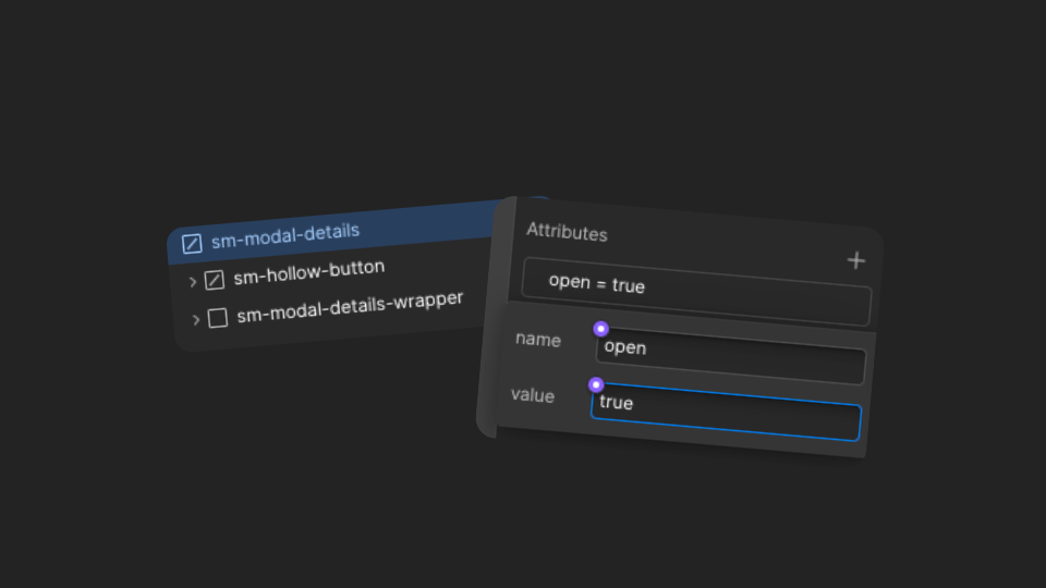 To edit the Create Address modal, simply select the custom element sm-modal-details in the navigator and add the following custom attribute in the Settings panel: