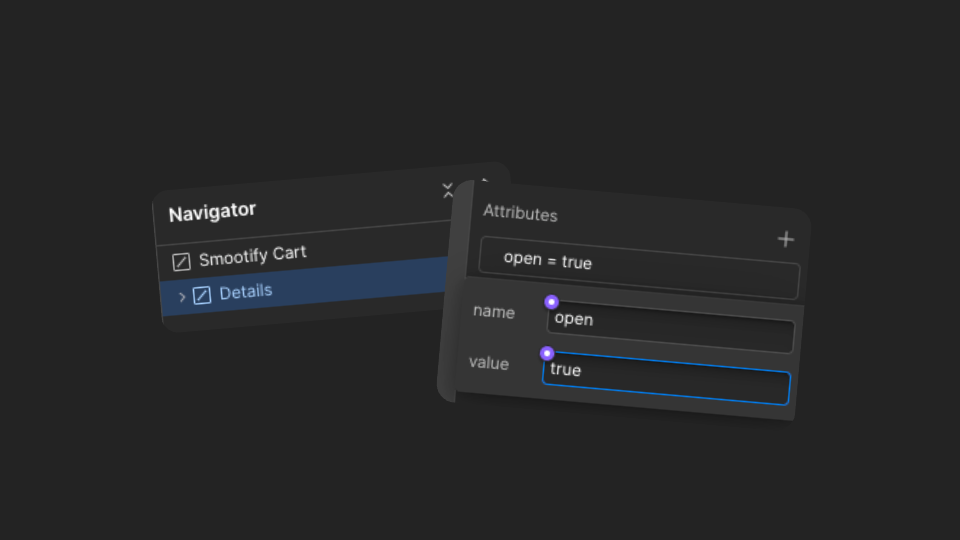 To edit the Mini Cart modal, simply select the custom element Details in the navigator and add the following custom attribute in the Settings panel: